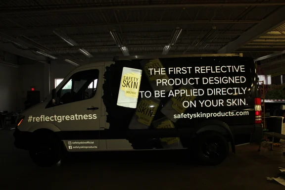 Another benefit of reflective wraps is safety. Most film suppliers recommend reflective graphics to make it easier to see vehicles at a distance at night and during inclement weather like rain and snow. According to our vinyl supplier 3M, one way to use reflective graphics on a budget is to add conspicuity markings (contour markings). In the United States, truck collisions fell 58% after conspicuity markings were introduced, according to a study by 3M. The key is that reflective material bounces light back to the driver of a passing vehicle, which provides important information for staying safe on the road.